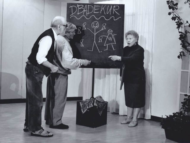 Das Stück spielt in einem Seniorenheim. Weil ihr Zimmer im gemeinsamen Haushalt für die private Firma des Sohnes gebraucht wird, muss die betagte Frau Bürki ins Altersheim übersiedeln. Ein schwerer, schmerzlicher Einschnitt in ihr Leben! Doch die Freundlichkeit der Mitbewohnerinnen und Mitbewohner sowie das Proben und Aufführen eines Theaterstücks reissen sie aus ihrer Depression. Als Sohn und Schwiegertochter sie zu sich zurückholen wollen, weigert sie sich. Es gefällt ihr hier und sie wird gebraucht.